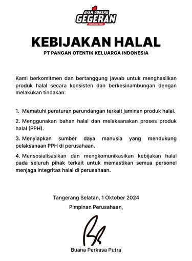Ayam goreng Gegeran merupakan resep istimewa yang diciptakan oleh Hadi Putra di Cianjur, pada tahun 1980. Resep ini menggabungkan 16 macam rempah dan selalu dibuat fresh setiap hari, sehingga dagingnya lembut, dan rasanya autentik.